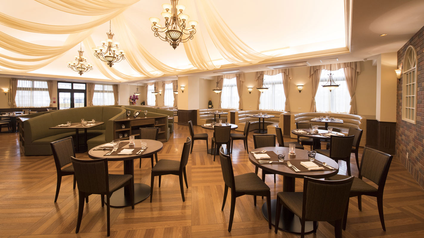 内装を一新したファミリーダイニングとパーティールーム、以前のシックな雰囲気を残したバーラウンジを設けた新店舗で営業を再開いたしました。